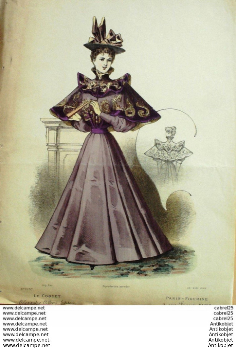 Gravure Mode Le Coquet 1895 # 38 (Old Fashion plate)