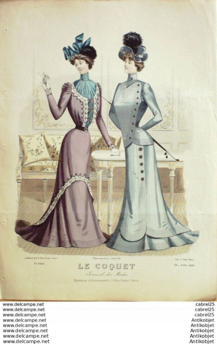 Gravure Mode Le Coquet 1899 # 39 (Old Fashion plate)