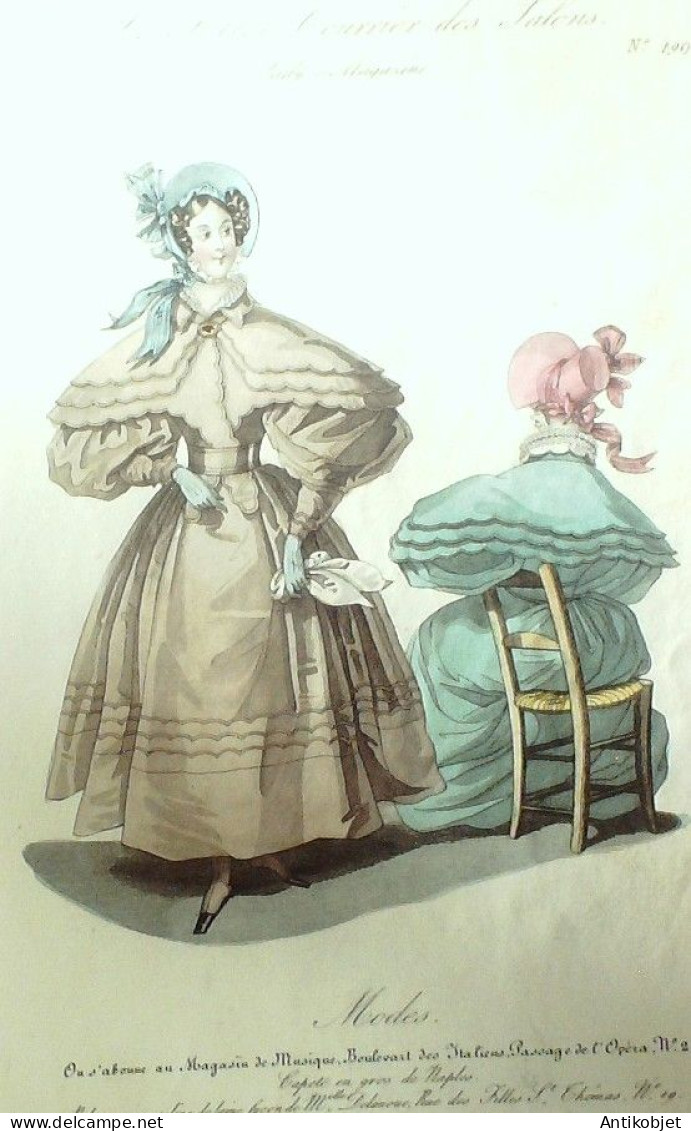 Gravure Mode Le Follet 1830 # 190 (aquarelle Old Fashion plate)