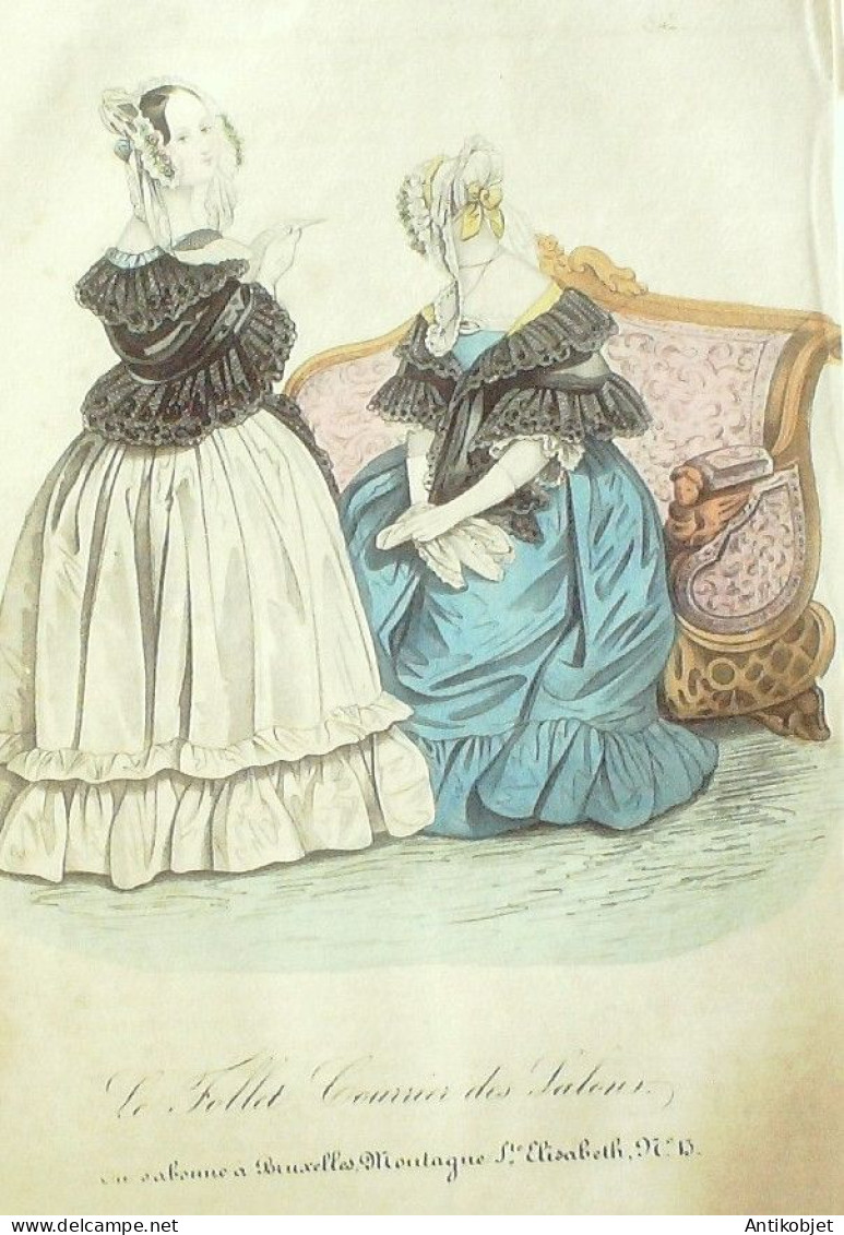 Gravure Mode Le Follet 1835 # 342 (aquarelle Old Fashion plate)