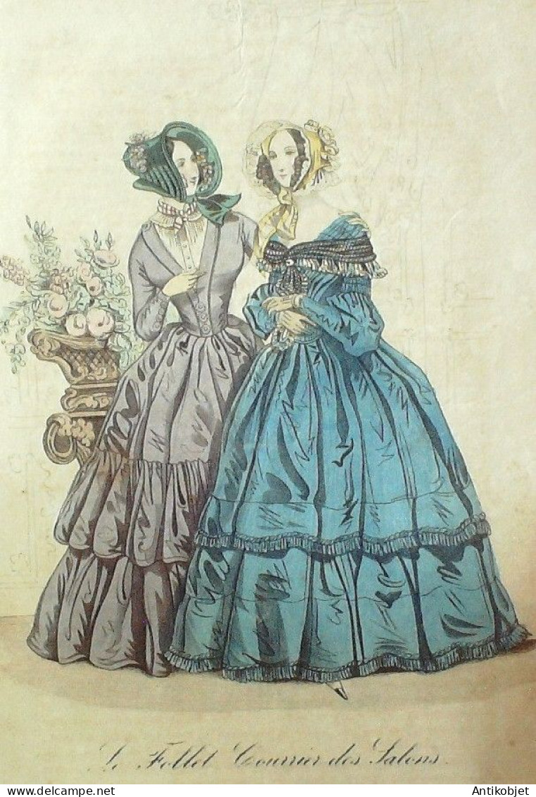 Gravure Mode Le Follet 1838 # 416 (aquarelle Old Fashion plate)