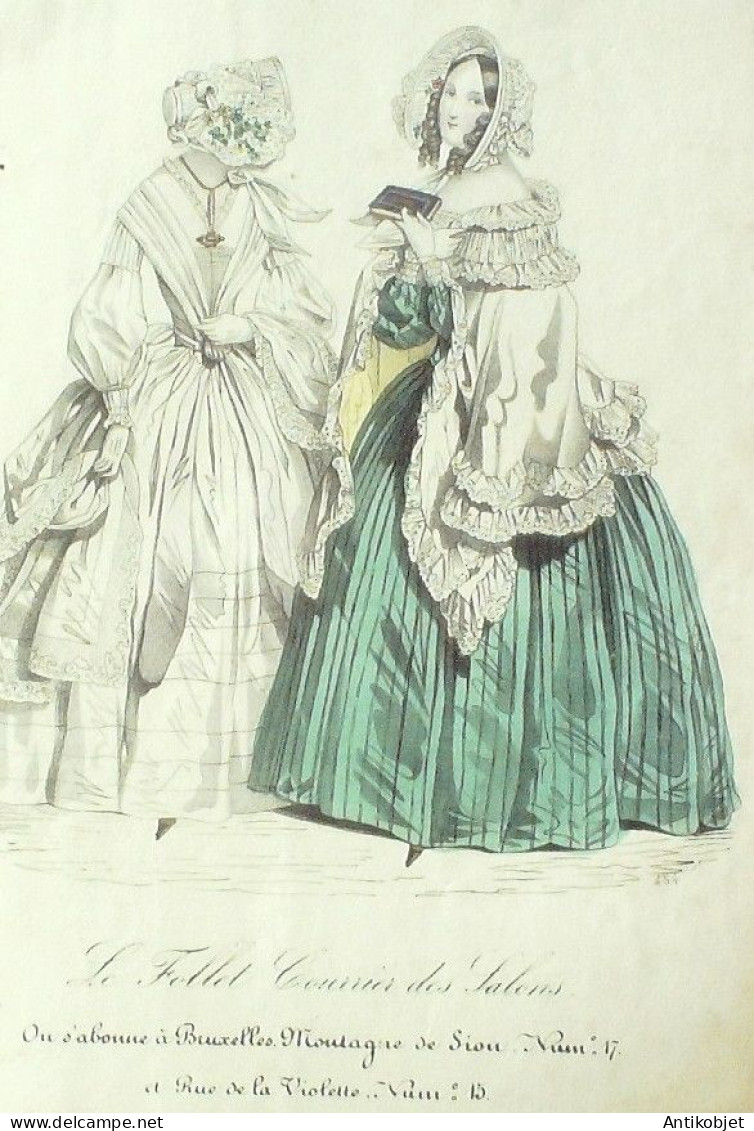 Gravure Mode Le Follet 1840 # 454 (aquarelle Old Fashion plate)