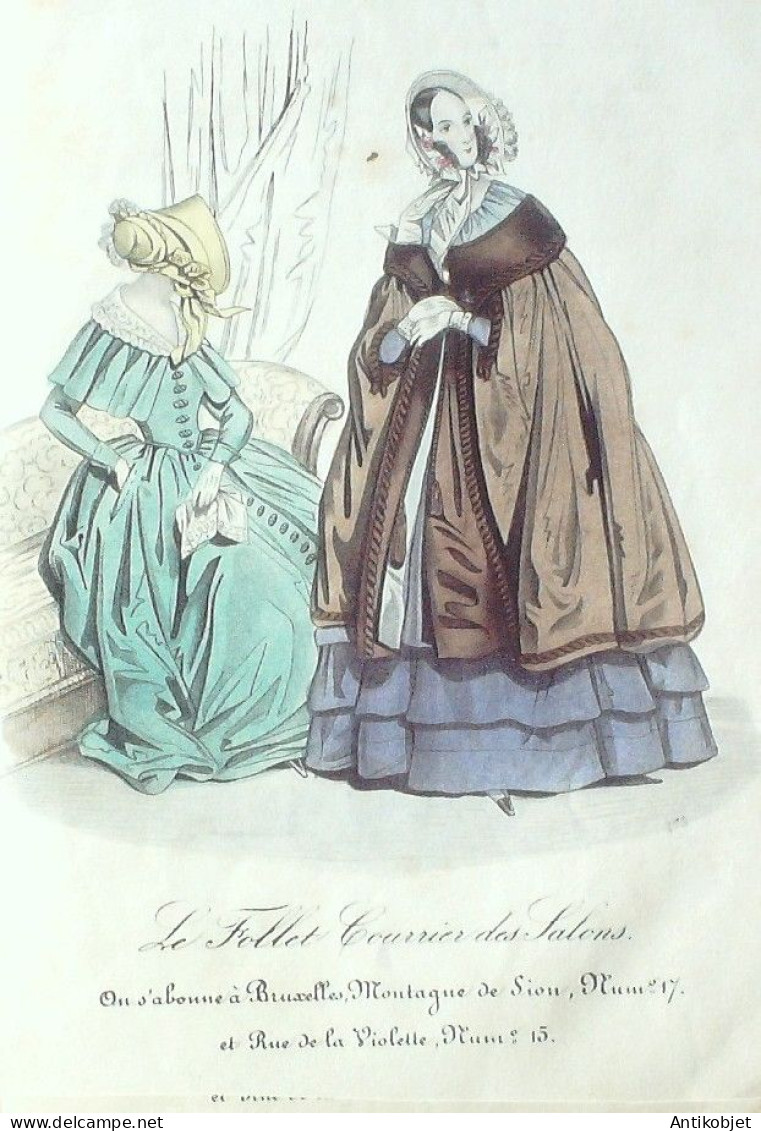 Gravure Mode Le Follet 1840 # 473 (aquarelle Old Fashion plate)