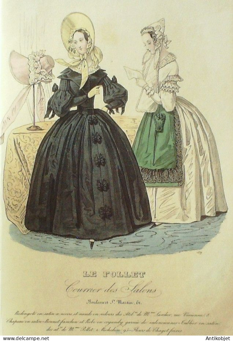 Gravure Mode Le Follet 1841 # 637 (aquarelle Old Fashion plate)