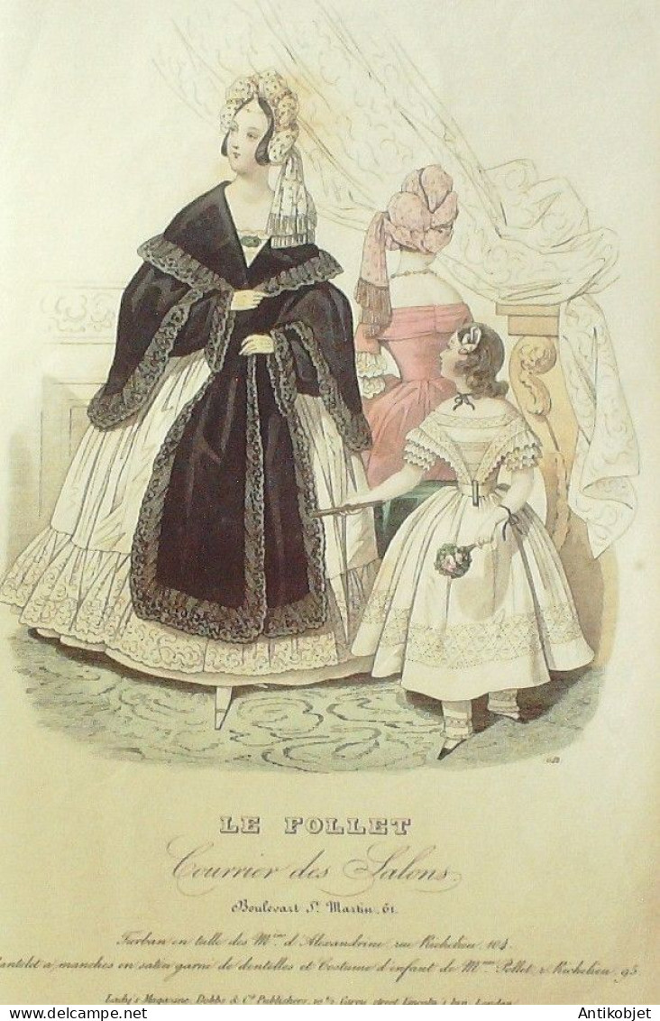 Gravure Mode Le Follet 1841 # 642 (aquarelle Old Fashion plate)