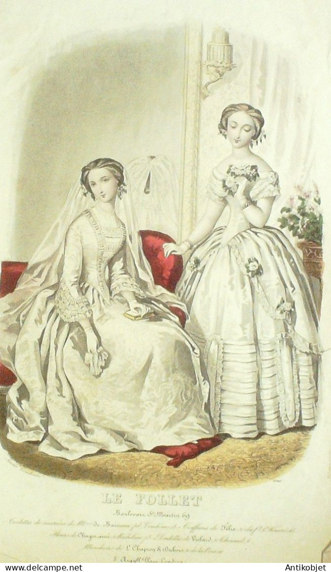 Gravure Mode Le Follet 1852 # 1640 (aquarelle Old Fashion plate)
