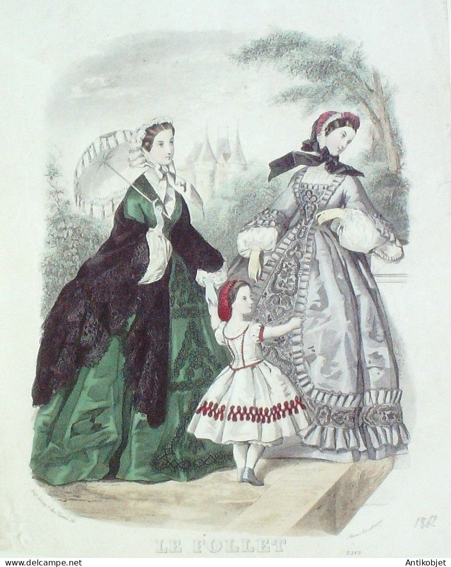 Gravure Mode Le Follet 1862 # 2313 (aquarelle Old Fashion plate)