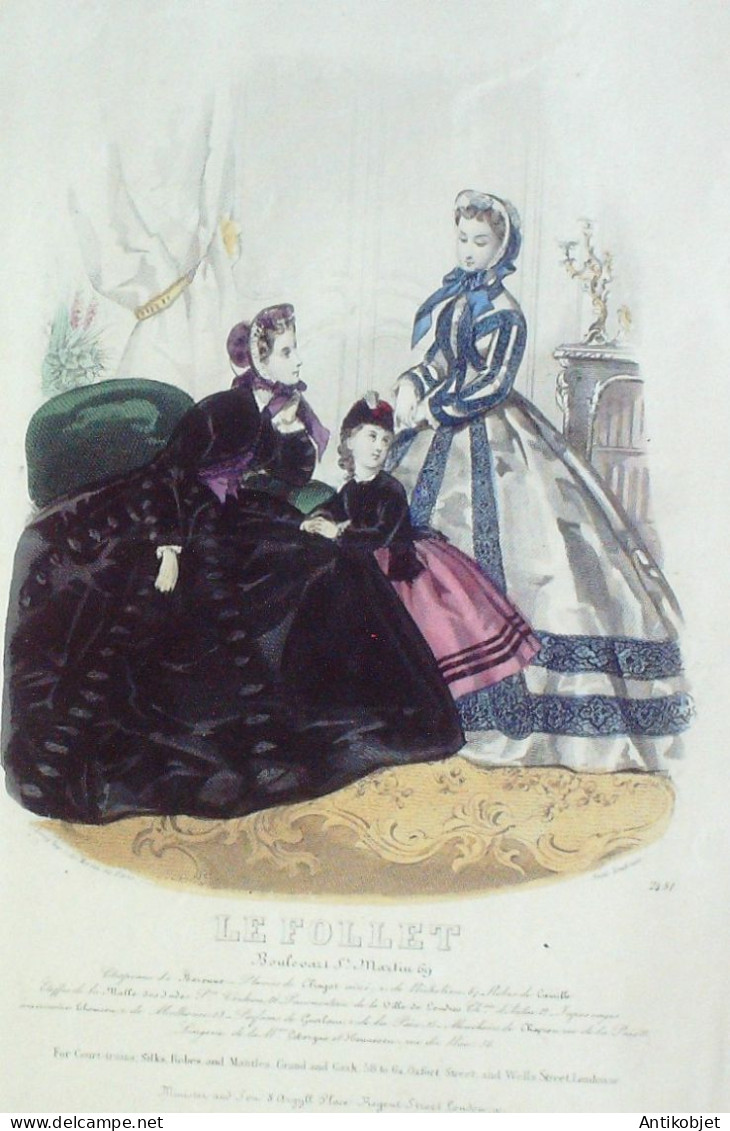 Gravure Mode Le Follet 1864 # 2451 (aquarelle Old Fashion plate)