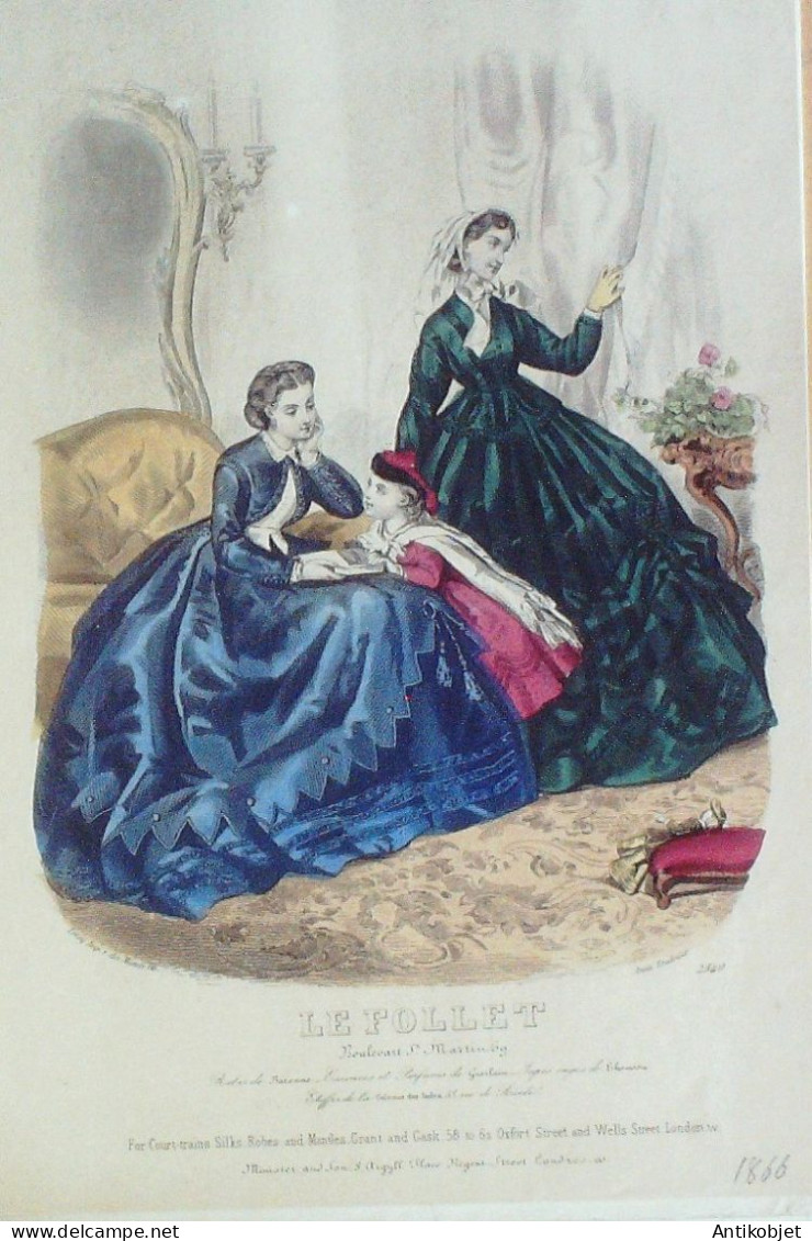 Gravure Mode Le Follet 1867 # 2540 (aquarelle Old Fashion plate)