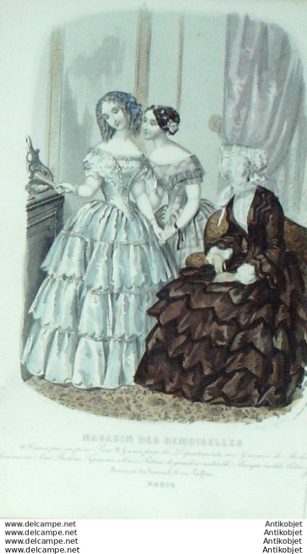 Gravure Mode Magasin Demoiselles 1851 # 1 (aquarellee Old Fashion plate)