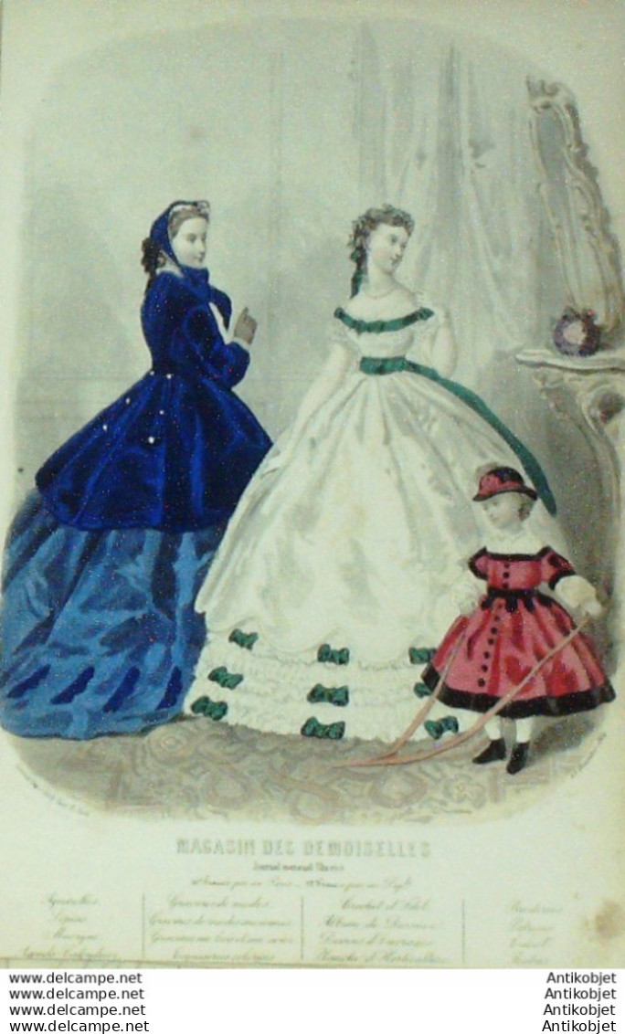 Gravure Mode Magasin Demoiselles 1864 # 11 (aquarellee Old Fashion plate)