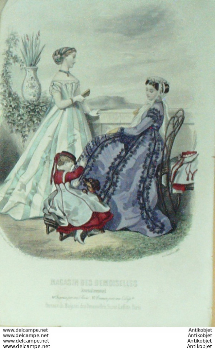 Gravure Mode Magasin Demoiselles 1866 # 10 (aquarellee Old Fashion plate)