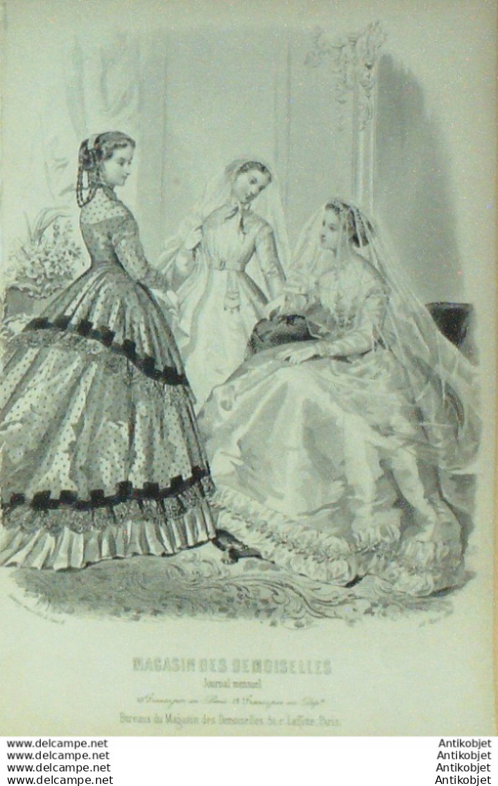 Gravure Mode Magasin Demoiselles 1866 # 3b (aquarellee Old Fashion plate)