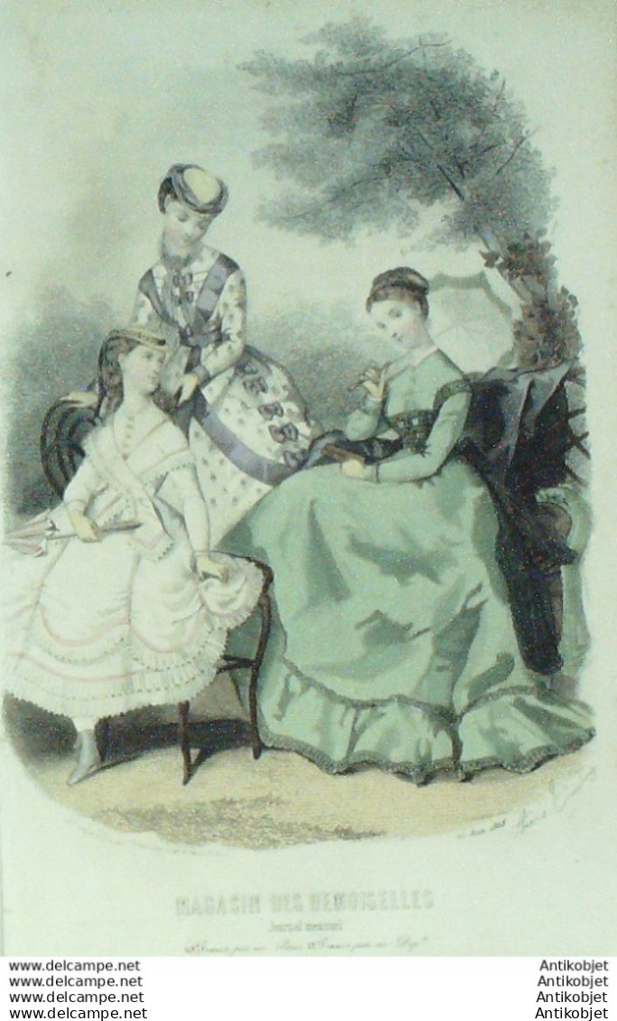 Gravure Mode Magasin Demoiselles 1868 # 6 (aquarellee Old Fashion plate)