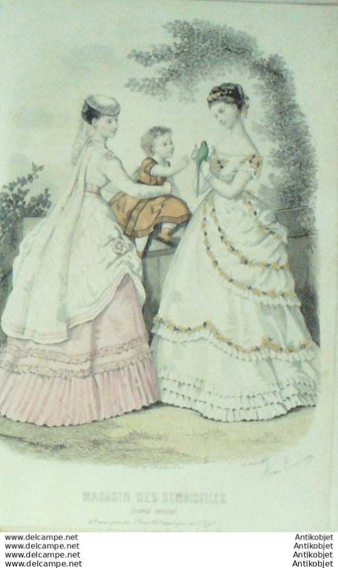 Gravure Mode Magasin Demoiselles 1868 # 8 (aquarellee Old Fashion plate)