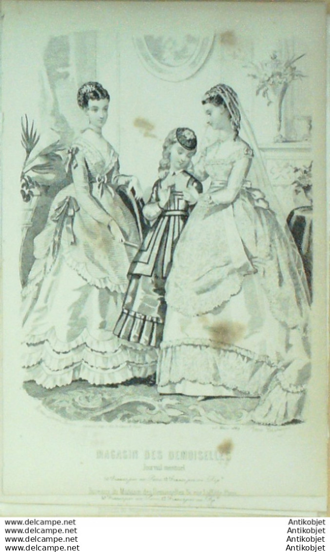 Gravure Mode Magasin Demoiselles 1869 # 3B (aquarellee Old Fashion plate)
