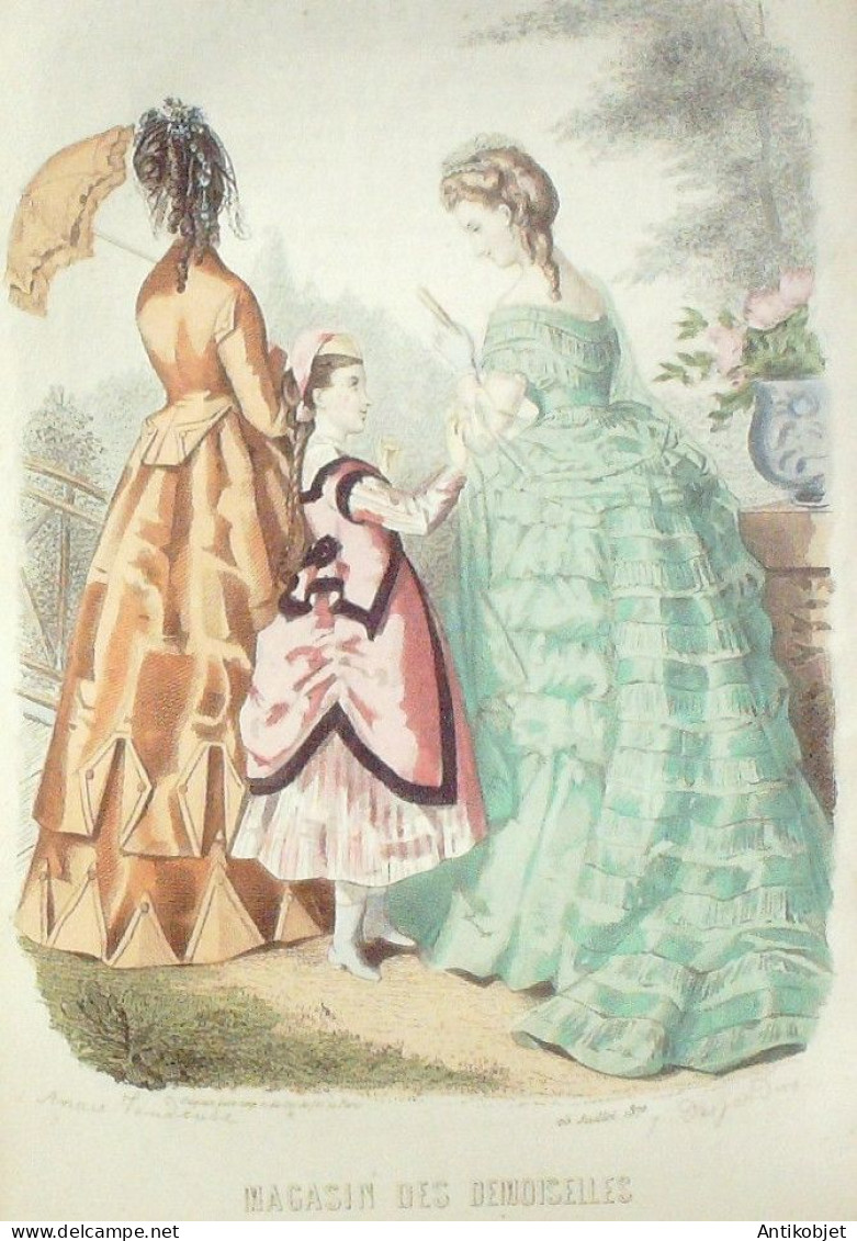 Gravure Mode Magasin Demoiselles 1870 # 7 (aquarellee Old Fashion plate)