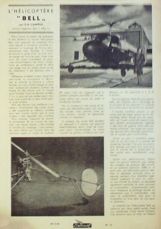 L'Aéronef 1945 # 13 hélicoptère Bell Havilland Dove