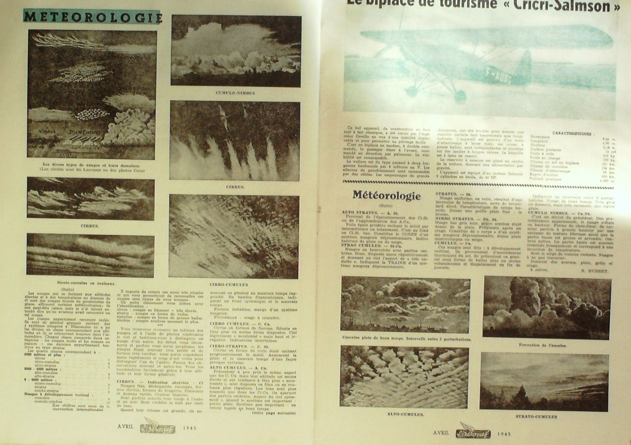 L'Aéronef 1945 # 3 Caster grades RAF Auto-Stable Biplace tourisme Cricri-Salmson Plan Potez 63