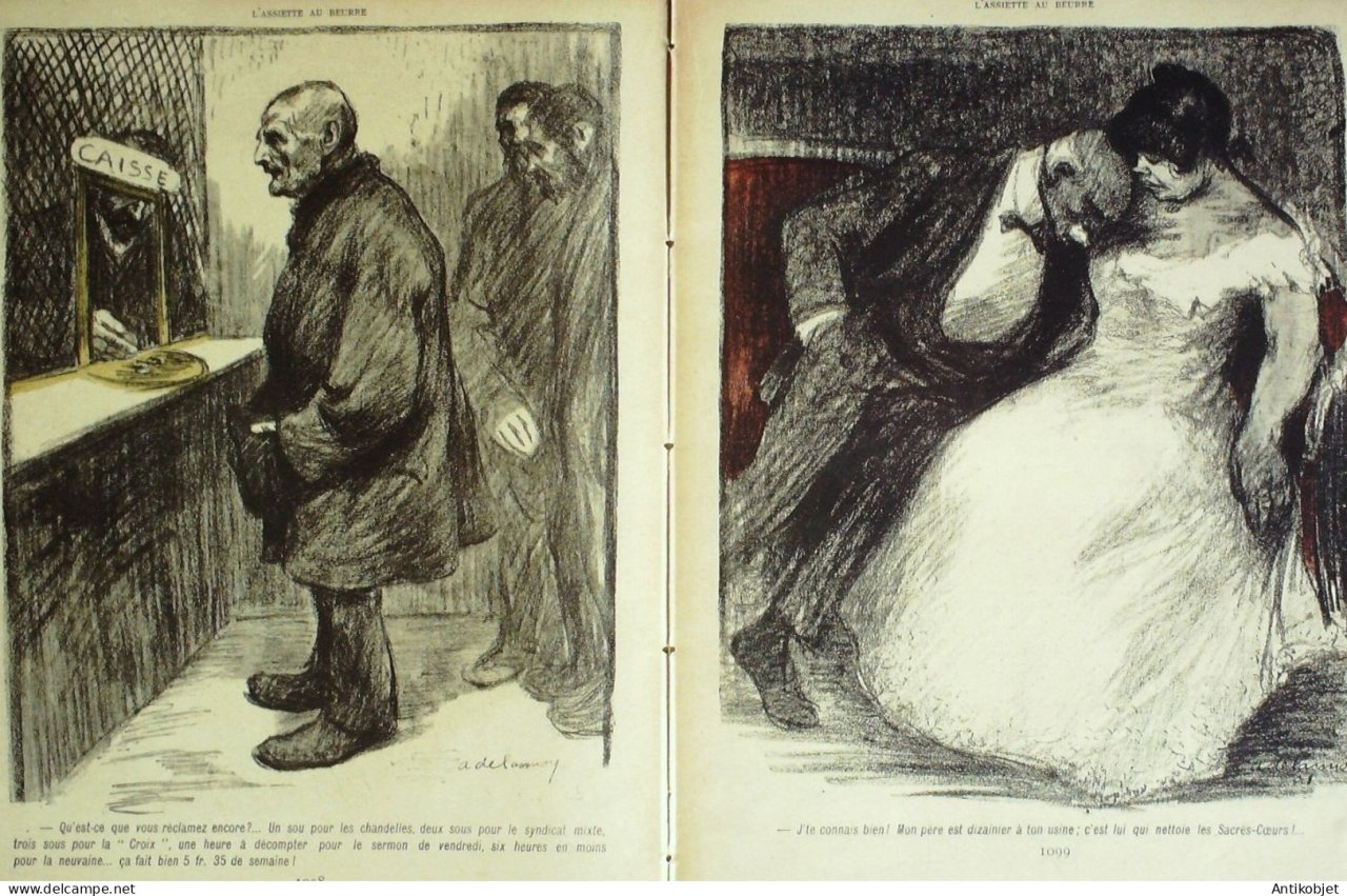 Magazine hebdomadaire satirique rare et recherche, illustre en francais par des dessinateurs anarchistes abordant les themes : l'anticlericalisme, l'antimilitarisme, l'anticolonialisme et la critique de la police et des tribunaux. Ouvrage paru de 1901 a 1936. 16 pages constituees de nombreuses illustrations couleurs et noir et blanc. (dessinateurs : Jean Veber, Charles Leandre, Jossot, Steinlein, Jacques Villon, Chares Huard, Vogel, Jeanniot, Ibels, Kupka, Roubille,Hermann-Paul,Thomas Leal da Camara,Felix Vallotton.Bogislas, etienne Le Rallic, Delannoy, Ricardo Flores, Galanis, Grandjouan, , Georges d'Ostoya, Maurice Radiguet, Demetrios Galanis, Juan Gris, Walter Crane, Alfred Kubin. Ayant publie pres de 10 000 dessins produits par environ 200 dessinateurs, elle constitue un precieux temoignage iconographique sur la Belle epoque. Complet et en tres bon etat. Ce n'est pas un numero issu d'une reliure donc non rogne. Chaque litho est pleine marge entierement