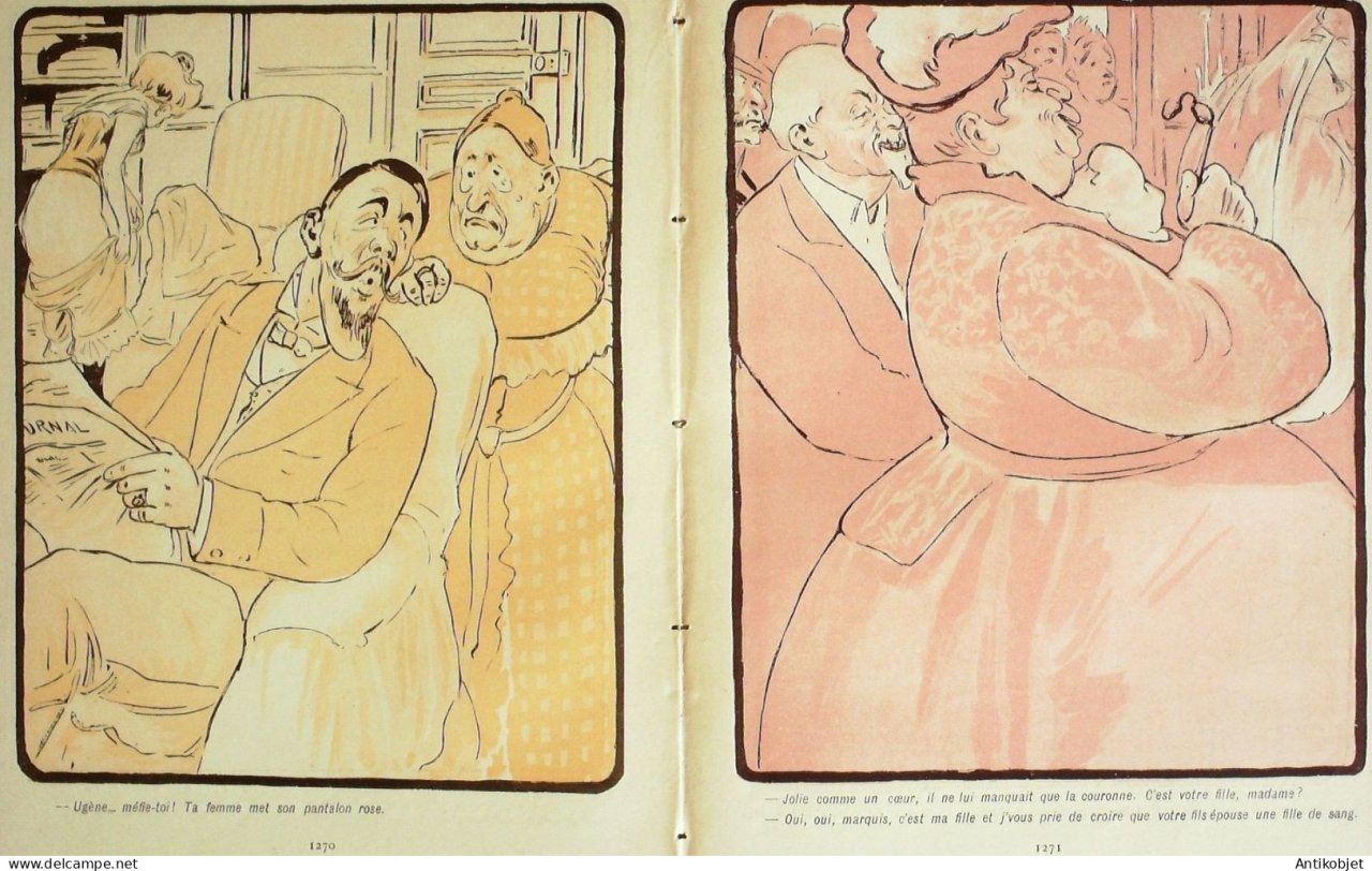 Magazine hebdomadaire satirique rare et recherche, illustre en francais par des dessinateurs anarchistes abordant les themes : l'anticlericalisme, l'antimilitarisme, l'anticolonialisme et la critique de la police et des tribunaux. Ouvrage paru de 1901 a 1936. 16 pages constituees de nombreuses illustrations couleurs et noir et blanc. (dessinateurs : Jean Veber, Charles Leandre, Jossot, Steinlein, Jacques Villon, Chares Huard, Vogel, Jeanniot, Ibels, Kupka, Roubille,Hermann-Paul,Thomas Leal da Camara,Felix Vallotton.Bogislas, etienne Le Rallic, Delannoy, Ricardo Flores, Galanis, Grandjouan, , Georges d'Ostoya, Maurice Radiguet, Demetrios Galanis, Juan Gris, Walter Crane, Alfred Kubin. Ayant publie pres de 10 000 dessins produits par environ 200 dessinateurs, elle constitue un precieux temoignage iconographique sur la Belle epoque. Complet et en tres bon etat. Ce n'est pas un numero issu d'une reliure donc non rogne. Chaque litho est pleine marge entierement