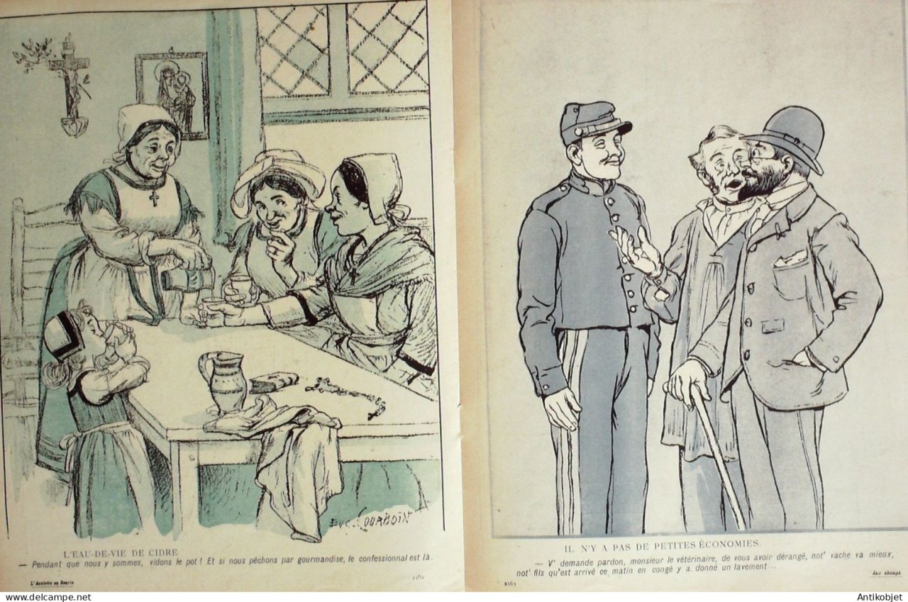 Magazine hebdomadaire satirique rare et recherche, illustre en francais par des dessinateurs anarchistes abordant les themes : l'anticlericalisme, l'antimilitarisme, l'anticolonialisme et la critique de la police et des tribunaux. Ouvrage paru de 1901 a 1936. 16 pages constituees de nombreuses illustrations couleurs et noir et blanc. (dessinateurs : Jean Veber, Charles Leandre, Jossot, Steinlein, Jacques Villon, Chares Huard, Vogel, Jeanniot, Ibels, Kupka, Roubille,Hermann-Paul,Thomas Leal da Camara,Felix Vallotton.Bogislas, etienne Le Rallic, Delannoy, Ricardo Flores, Galanis, Grandjouan, , Georges d'Ostoya, Maurice Radiguet, Demetrios Galanis, Juan Gris, Walter Crane, Alfred Kubin. Ayant publie pres de 10 000 dessins produits par environ 200 dessinateurs, elle constitue un precieux temoignage iconographique sur la Belle epoque. Complet et en tres bon etat. Ce n'est pas un numero issu d'une reliure donc non rogne. Chaque litho est pleine marge entierement