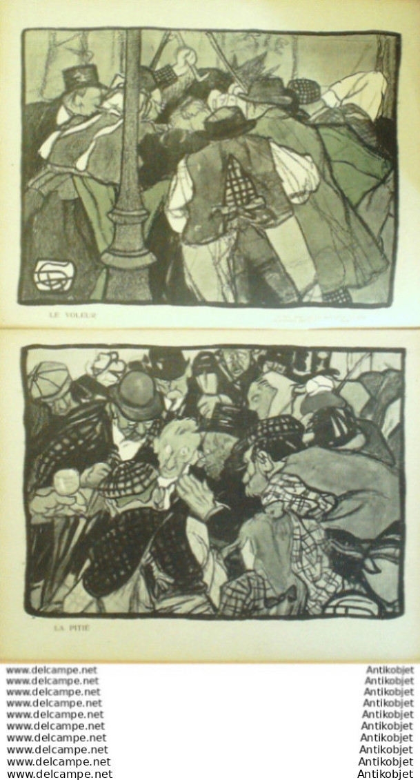 Magazine hebdomadaire satirique rare et recherche, illustre en francais par des dessinateurs anarchistes abordant les themes : l'anticlericalisme, l'antimilitarisme, l'anticolonialisme et la critique de la police et des tribunaux. Ouvrage paru de 1901 a 1936. 16 pages constituees de nombreuses illustrations couleurs et noir et blanc. (dessinateurs : Jean Veber, Charles Leandre, Jossot, Steinlein, Jacques Villon, Chares Huard, Vogel, Jeanniot, Ibels, Kupka, Roubille,Hermann-Paul,Thomas Leal da Camara,Felix Vallotton.Bogislas, etienne Le Rallic, Delannoy, Ricardo Flores, Galanis, Grandjouan, , Georges d'Ostoya, Maurice Radiguet, Demetrios Galanis, Juan Gris, Walter Crane, Alfred Kubin. Ayant publie pres de 10 000 dessins produits par environ 200 dessinateurs, elle constitue un precieux temoignage iconographique sur la Belle epoque. Complet et en tres bon etat. Ce n'est pas un numero issu d'une reliure donc non rogne. Chaque litho est pleine marge entierement