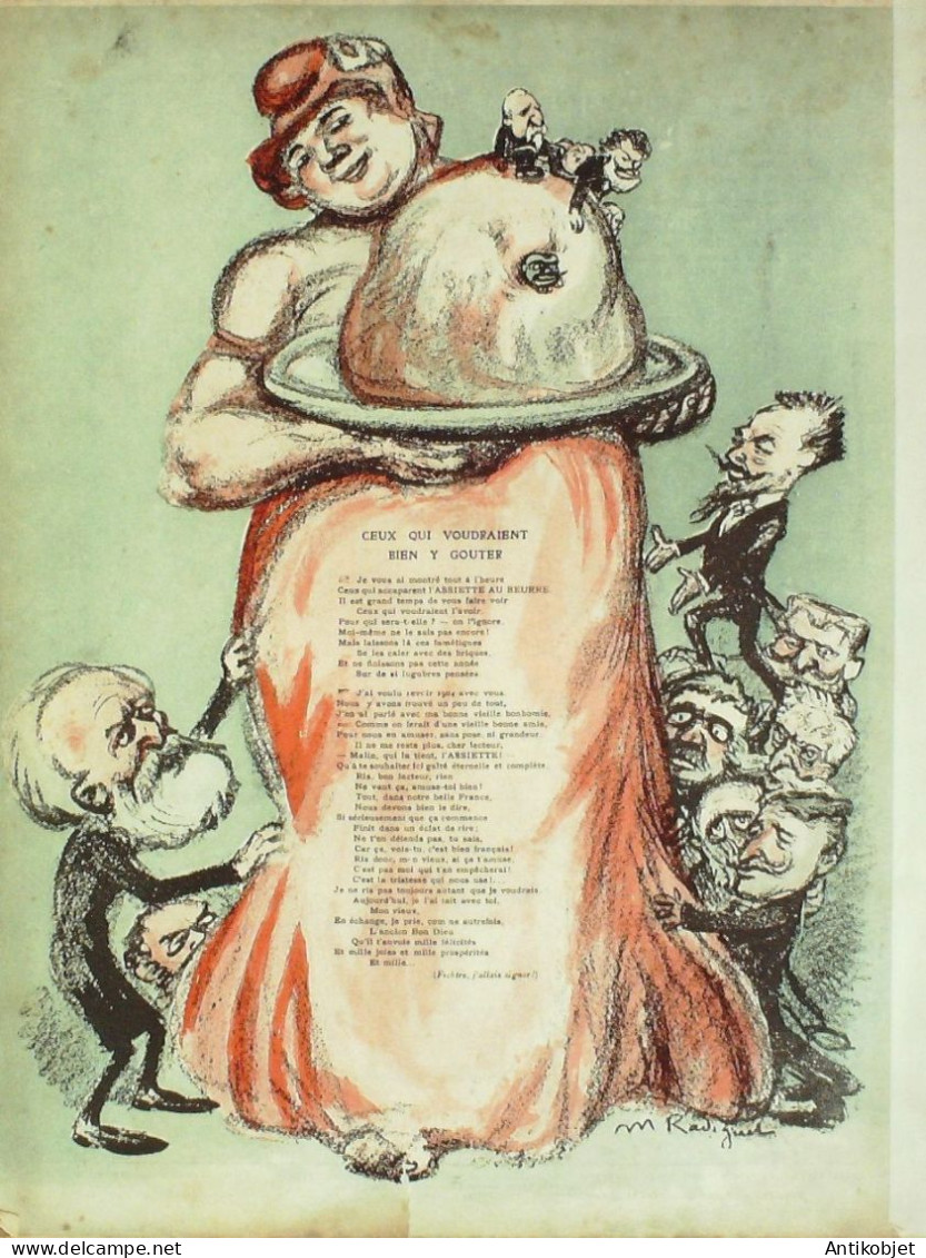 Magazine hebdomadaire satirique rare et recherche, illustre en francais par des dessinateurs anarchistes abordant les themes : l'anticlericalisme, l'antimilitarisme, l'anticolonialisme et la critique de la police et des tribunaux. Ouvrage paru de 1901 a 1936. 16 pages constituees de nombreuses illustrations couleurs et noir et blanc. (dessinateurs : Jean Veber, Charles Leandre, Jossot, Steinlein, Jacques Villon, Chares Huard, Vogel, Jeanniot, Ibels, Kupka, Roubille,Hermann-Paul,Thomas Leal da Camara,Felix Vallotton.Bogislas, etienne Le Rallic, Delannoy, Ricardo Flores, Galanis, Grandjouan, , Georges d'Ostoya, Maurice Radiguet, Demetrios Galanis, Juan Gris, Walter Crane, Alfred Kubin. Ayant publie pres de 10 000 dessins produits par environ 200 dessinateurs, elle constitue un precieux temoignage iconographique sur la Belle epoque. Complet et en tres bon etat. Ce n'est pas un numero issu d'une reliure donc non rogne. Chaque litho est pleine marge entierement