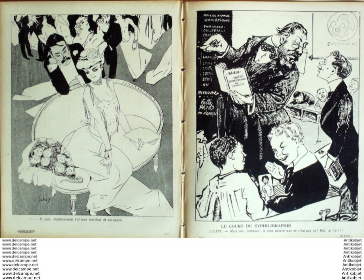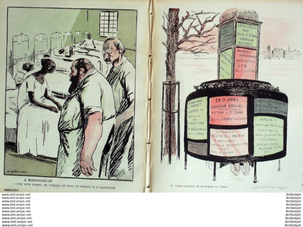 Magazine hebdomadaire satirique rare et recherche, illustre en francais par des dessinateurs anarchistes abordant les themes : l'anticlericalisme, l'antimilitarisme, l'anticolonialisme et la critique de la police et des tribunaux. Ouvrage paru de 1901 a 1936. 16 pages constituees de nombreuses illustrations couleurs et noir et blanc. (dessinateurs : Jean Veber, Charles Leandre, Jossot, Steinlein, Jacques Villon, Chares Huard, Vogel, Jeanniot, Ibels, Kupka, Roubille,Hermann-Paul,Thomas Leal da Camara,Felix Vallotton.Bogislas, etienne Le Rallic, Delannoy, Ricardo Flores, Galanis, Grandjouan, , Georges d'Ostoya, Maurice Radiguet, Demetrios Galanis, Juan Gris, Walter Crane, Alfred Kubin. Ayant publie pres de 10 000 dessins produits par environ 200 dessinateurs, elle constitue un precieux temoignage iconographique sur la Belle epoque. Complet et en tres bon etat. Ce n'est pas un numero issu d'une reliure donc non rogne. Chaque litho est pleine marge entierement