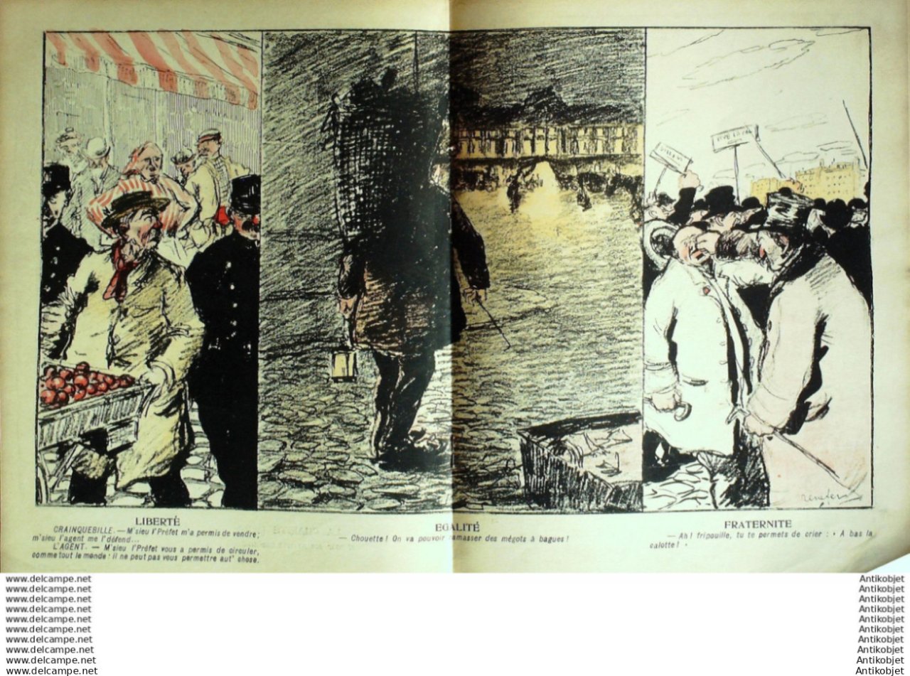 Magazine hebdomadaire satirique rare et recherche, illustre en francais par des dessinateurs anarchistes abordant les themes : l'anticlericalisme, l'antimilitarisme, l'anticolonialisme et la critique de la police et des tribunaux. Ouvrage paru de 1901 a 1936. 16 pages constituees de nombreuses illustrations couleurs et noir et blanc. (dessinateurs : Jean Veber, Charles Leandre, Jossot, Steinlein, Jacques Villon, Chares Huard, Vogel, Jeanniot, Ibels, Kupka, Roubille,Hermann-Paul,Thomas Leal da Camara,Felix Vallotton.Bogislas, etienne Le Rallic, Delannoy, Ricardo Flores, Galanis, Grandjouan, , Georges d'Ostoya, Maurice Radiguet, Demetrios Galanis, Juan Gris, Walter Crane, Alfred Kubin. Ayant publie pres de 10 000 dessins produits par environ 200 dessinateurs, elle constitue un precieux temoignage iconographique sur la Belle epoque. Complet et en tres bon etat. Ce n'est pas un numero issu d'une reliure donc non rogne. Chaque litho est pleine marge entierement