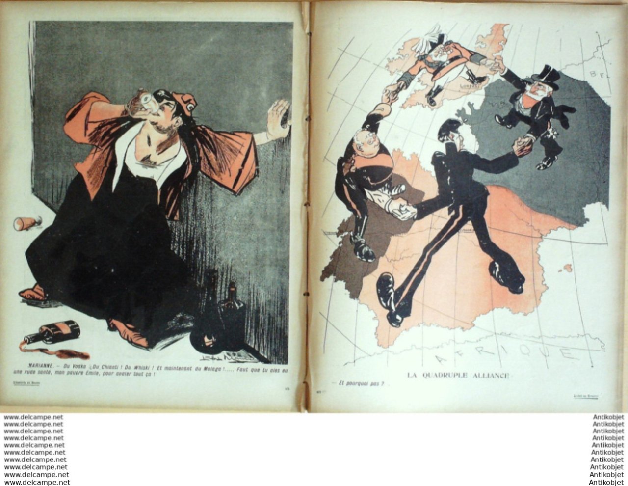 Magazine hebdomadaire satirique rare et recherche, illustre en francais par des dessinateurs anarchistes abordant les themes : l'anticlericalisme, l'antimilitarisme, l'anticolonialisme et la critique de la police et des tribunaux. Ouvrage paru de 1901 a 1936. 16 pages constituees de nombreuses illustrations couleurs et noir et blanc. (dessinateurs : Jean Veber, Charles Leandre, Jossot, Steinlein, Jacques Villon, Chares Huard, Vogel, Jeanniot, Ibels, Kupka, Roubille,Hermann-Paul,Thomas Leal da Camara,Felix Vallotton.Bogislas, etienne Le Rallic, Delannoy, Ricardo Flores, Galanis, Grandjouan, , Georges d'Ostoya, Maurice Radiguet, Demetrios Galanis, Juan Gris, Walter Crane, Alfred Kubin. Ayant publie pres de 10 000 dessins produits par environ 200 dessinateurs, elle constitue un precieux temoignage iconographique sur la Belle epoque. Complet et en tres bon etat. Ce n'est pas un numero issu d'une reliure donc non rogne. Chaque litho est pleine marge entierement