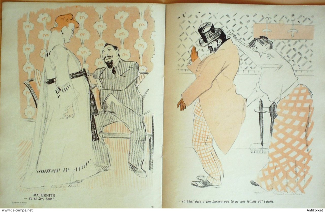 Magazine hebdomadaire satirique rare et recherche, illustre en francais par des dessinateurs anarchistes abordant les themes : l'anticlericalisme, l'antimilitarisme, l'anticolonialisme et la critique de la police et des tribunaux. Ouvrage paru de 1901 a 1936. 16 pages constituees de nombreuses illustrations couleurs et noir et blanc. (dessinateurs : Jean Veber, Charles Leandre, Jossot, Steinlein, Jacques Villon, Chares Huard, Vogel, Jeanniot, Ibels, Kupka, Roubille,Hermann-Paul,Thomas Leal da Camara,Felix Vallotton.Bogislas, etienne Le Rallic, Delannoy, Ricardo Flores, Galanis, Grandjouan, , Georges d'Ostoya, Maurice Radiguet, Demetrios Galanis, Juan Gris, Walter Crane, Alfred Kubin. Ayant publie pres de 10 000 dessins produits par environ 200 dessinateurs, elle constitue un precieux temoignage iconographique sur la Belle epoque. Complet et en tres bon etat. Ce n'est pas un numero issu d'une reliure donc non rogne. Chaque litho est pleine marge entierement