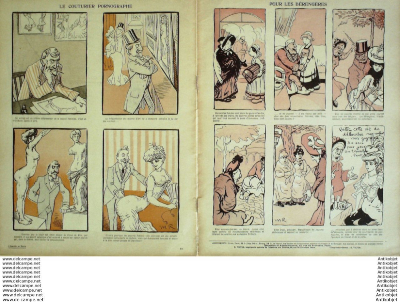 Magazine hebdomadaire satirique rare et recherche, illustre en francais par des dessinateurs anarchistes abordant les themes : l'anticlericalisme, l'antimilitarisme, l'anticolonialisme et la critique de la police et des tribunaux. Ouvrage paru de 1901 a 1936. 16 pages constituees de nombreuses illustrations couleurs et noir et blanc. (dessinateurs : Jean Veber, Charles Leandre, Jossot, Steinlein, Jacques Villon, Chares Huard, Vogel, Jeanniot, Ibels, Kupka, Roubille,Hermann-Paul,Thomas Leal da Camara,Felix Vallotton.Bogislas, etienne Le Rallic, Delannoy, Ricardo Flores, Galanis, Grandjouan, , Georges d'Ostoya, Maurice Radiguet, Demetrios Galanis, Juan Gris, Walter Crane, Alfred Kubin. Ayant publie pres de 10 000 dessins produits par environ 200 dessinateurs, elle constitue un precieux temoignage iconographique sur la Belle epoque. Complet et en tres bon etat. Ce n'est pas un numero issu d'une reliure donc non rogne. Chaque litho est pleine marge entierement