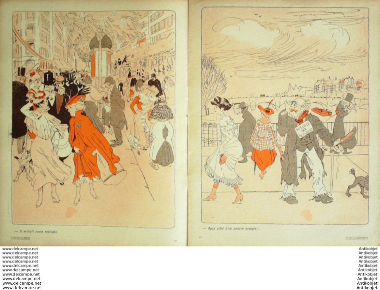 Magazine hebdomadaire satirique rare et recherche, illustre en francais par des dessinateurs anarchistes abordant les themes : l'anticlericalisme, l'antimilitarisme, l'anticolonialisme et la critique de la police et des tribunaux. Ouvrage paru de 1901 a 1936. 16 pages constituees de nombreuses illustrations couleurs et noir et blanc. (dessinateurs : Jean Veber, Charles Leandre, Jossot, Steinlein, Jacques Villon, Chares Huard, Vogel, Jeanniot, Ibels, Kupka, Roubille,Hermann-Paul,Thomas Leal da Camara,Felix Vallotton.Bogislas, etienne Le Rallic, Delannoy, Ricardo Flores, Galanis, Grandjouan, , Georges d'Ostoya, Maurice Radiguet, Demetrios Galanis, Juan Gris, Walter Crane, Alfred Kubin. Ayant publie pres de 10 000 dessins produits par environ 200 dessinateurs, elle constitue un precieux temoignage iconographique sur la Belle epoque. Complet et en tres bon etat. Ce n'est pas un numero issu d'une reliure donc non rogne. Chaque litho est pleine marge entierement