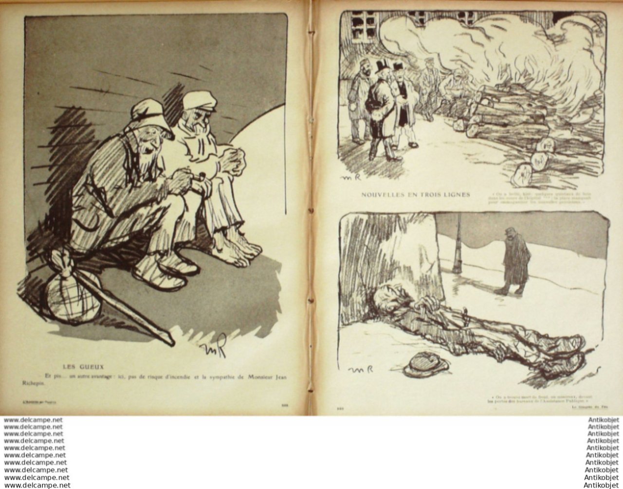 Magazine hebdomadaire satirique rare et recherche, illustre en francais par des dessinateurs anarchistes abordant les themes : l'anticlericalisme, l'antimilitarisme, l'anticolonialisme et la critique de la police et des tribunaux. Ouvrage paru de 1901 a 1936. 16 pages constituees de nombreuses illustrations couleurs et noir et blanc. (dessinateurs : Jean Veber, Charles Leandre, Jossot, Steinlein, Jacques Villon, Chares Huard, Vogel, Jeanniot, Ibels, Kupka, Roubille,Hermann-Paul,Thomas Leal da Camara,Felix Vallotton.Bogislas, etienne Le Rallic, Delannoy, Ricardo Flores, Galanis, Grandjouan, , Georges d'Ostoya, Maurice Radiguet, Demetrios Galanis, Juan Gris, Walter Crane, Alfred Kubin. Ayant publie pres de 10 000 dessins produits par environ 200 dessinateurs, elle constitue un precieux temoignage iconographique sur la Belle epoque. Complet et en tres bon etat. Ce n'est pas un numero issu d'une reliure donc non rogne. Chaque litho est pleine marge entierement