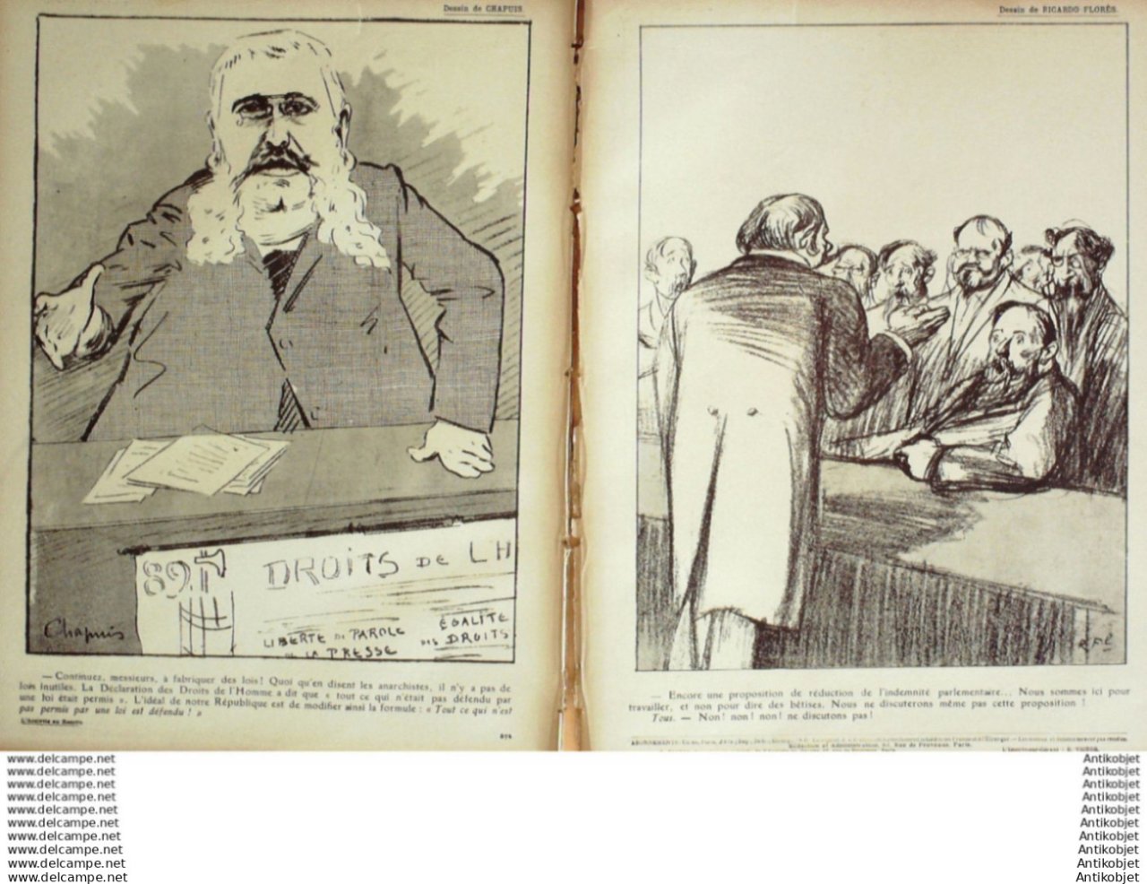 Magazine hebdomadaire satirique rare et recherche, illustre en francais par des dessinateurs anarchistes abordant les themes : l'anticlericalisme, l'antimilitarisme, l'anticolonialisme et la critique de la police et des tribunaux. Ouvrage paru de 1901 a 1936. 16 pages constituees de nombreuses illustrations couleurs et noir et blanc. (dessinateurs : Jean Veber, Charles Leandre, Jossot, Steinlein, Jacques Villon, Chares Huard, Vogel, Jeanniot, Ibels, Kupka, Roubille,Hermann-Paul,Thomas Leal da Camara,Felix Vallotton.Bogislas, etienne Le Rallic, Delannoy, Ricardo Flores, Galanis, Grandjouan, , Georges d'Ostoya, Maurice Radiguet, Demetrios Galanis, Juan Gris, Walter Crane, Alfred Kubin. Ayant publie pres de 10 000 dessins produits par environ 200 dessinateurs, elle constitue un precieux temoignage iconographique sur la Belle epoque. Complet et en tres bon etat. Ce n'est pas un numero issu d'une reliure donc non rogne. Chaque litho est pleine marge entierement