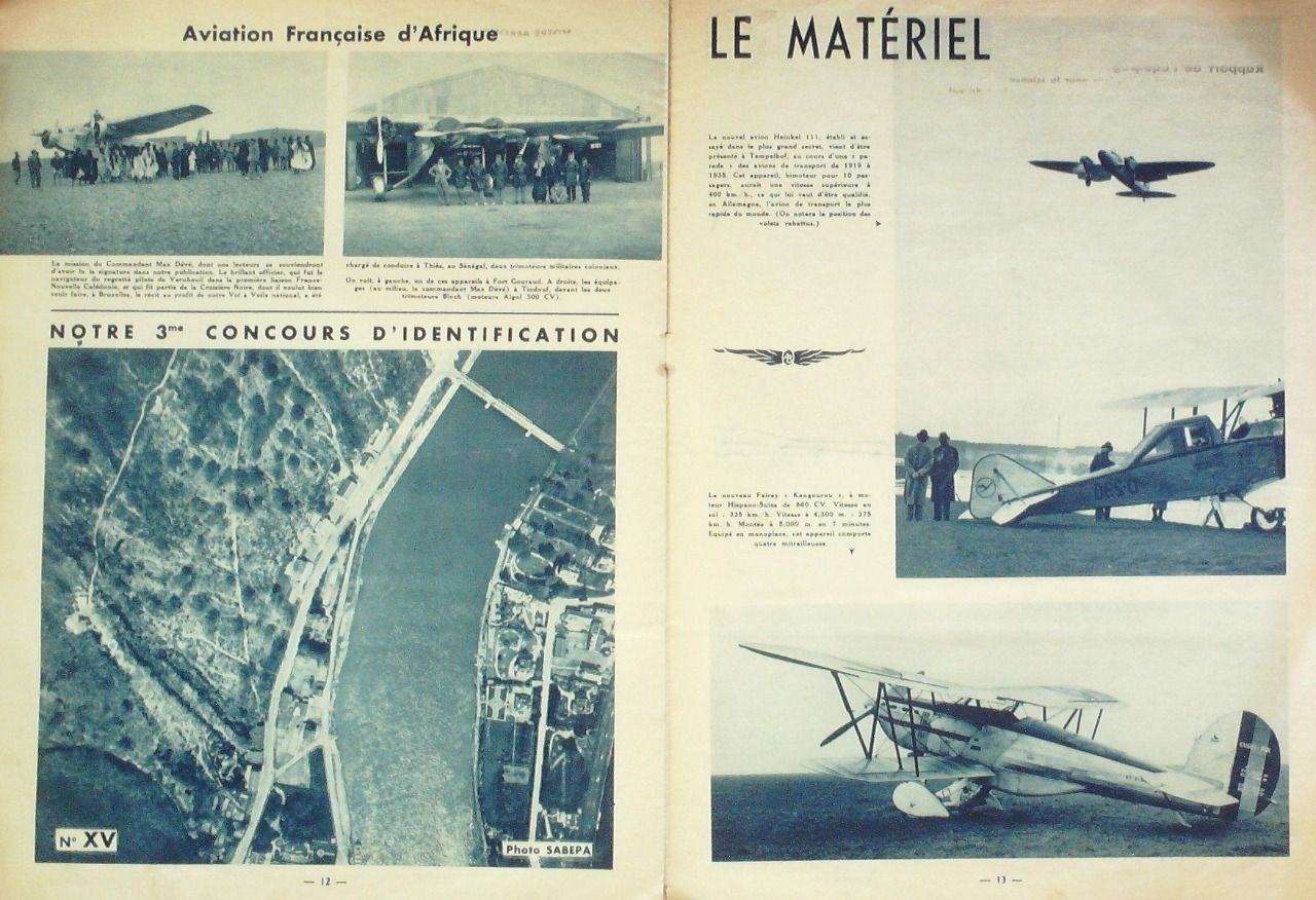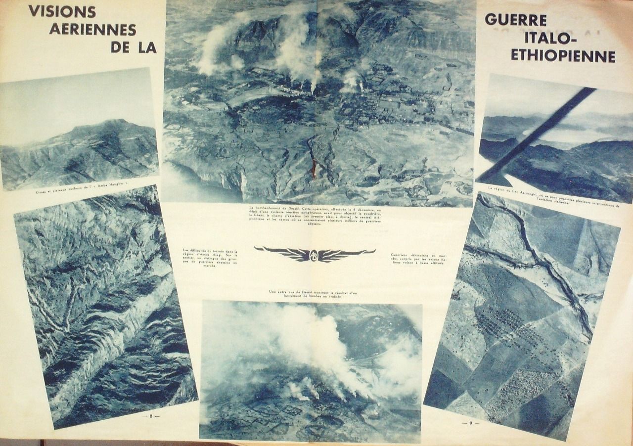 Revue hebdomadaire de l'aviation belge d'avions illustré de l'aéronautique mondiale en 16 pages. Sommaire : visions aériennes de la guerre italo-ethiopienne le bombardement de Dessié 5 pages, avions porteurs et la stabilité, le Reich et l'aviation Francfort, modèles réduits concours striep-Club Schaerbeekois des planeurs, la chasse de nuit, aviation française d'Afrique, Heinkeil 111, le Fairey Kangourou, plan du Sotterdam HW Postma d'Anvers avion volant type PB 21