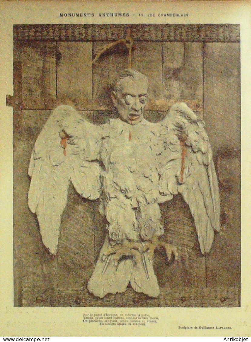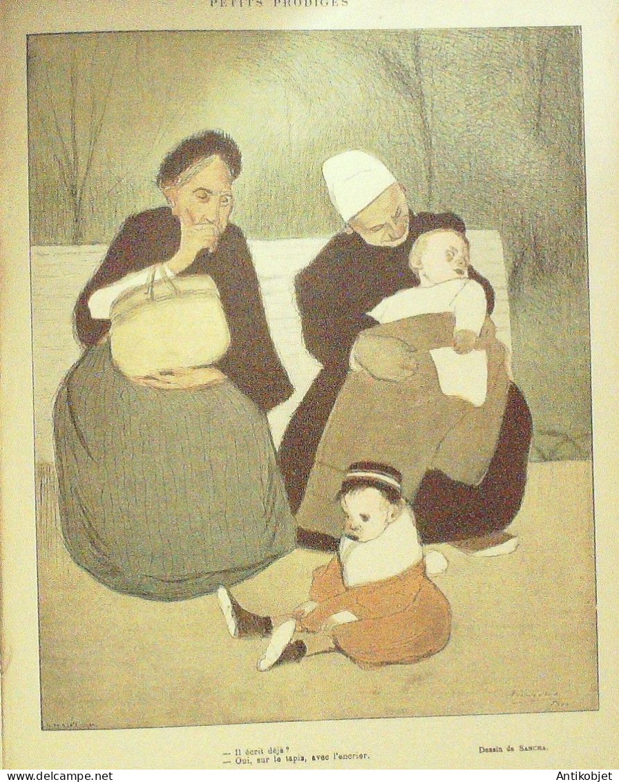 Reliure souple de 16 pages illustrées par de nombreux caricaturistes tels que Avelot Bac Balluriau Barcet Burret Capy Cappiello Carlegle Delannoy Delaw Faivre Florès Genty Gerbault Gottlob Guillaume Guydo Hemard Hermann Hérouard Huard Iribe Jeanniot Leandre Losques Markous Metivet Meunier Mirande Nob Ostoya Plumet Poulbot Prejelan Radiguet Roubille Sam Tiret Bugnet Villemot