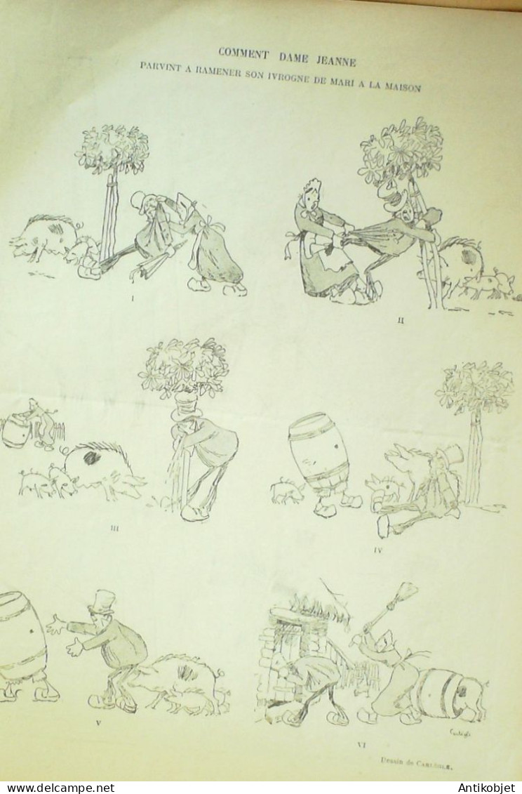 Reliure souple de 16 pages illustrées par de nombreux caricaturistes tels que Avelot Bac Balluriau Barcet Burret Capy Cappiello Carlegle Delannoy Delaw Faivre Florès Genty Gerbault Gottlob Guillaume Guydo Hemard Hermann Hérouard Huard Iribe Jeanniot Leandre Losques Markous Metivet Meunier Mirande Nob Ostoya Plumet Poulbot Prejelan Radiguet Roubille Sam Tiret Bugnet Villemot
