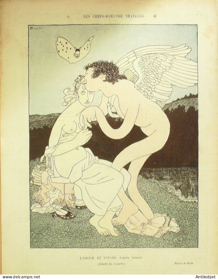 Reliure souple de 16 pages illustrées par de nombreux caricaturistes tels que Avelot Bac Balluriau Barcet Burret Capy Cappiello Carlegle Delannoy Delaw Faivre Florès Genty Gerbault Gottlob Guillaume Guydo Hemard Hermann Hérouard Huard Iribe Jeanniot Leandre Losques Markous Metivet Meunier Mirande Nob Ostoya Plumet Poulbot Prejelan Radiguet Roubille Sam Tiret Bugnet Villemot