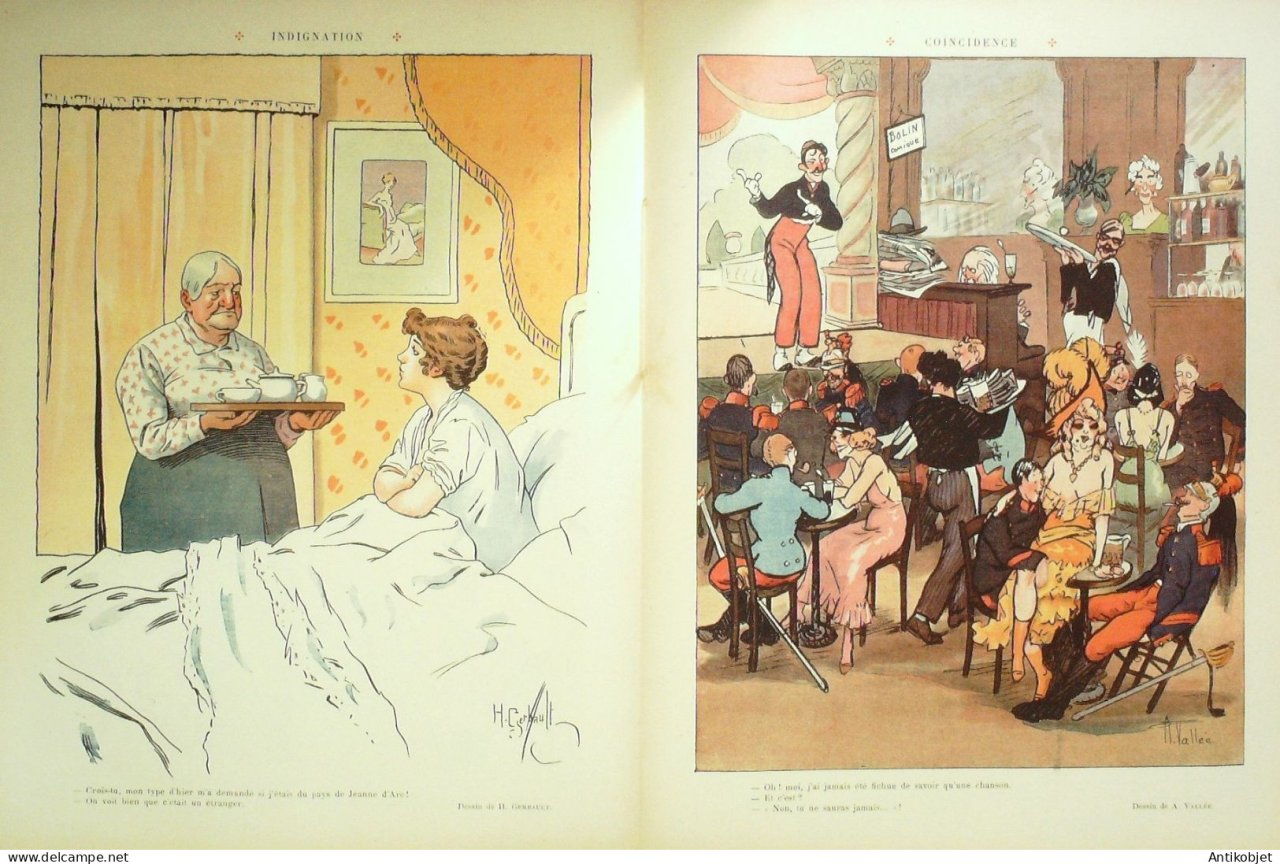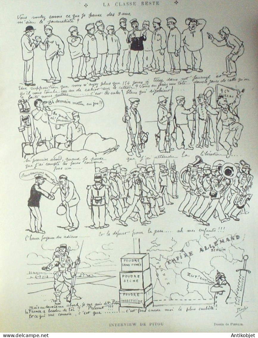 Reliure souple de 16 pages illustrées par de nombreux caricaturistes tels que Avelot Bac Balluriau Barcet Burret Capy Cappiello Carlegle Delannoy Delaw Faivre Florès Genty Gerbault Gottlob Guillaume Guydo Hemard Hermann Hérouard Huard Iribe Jeanniot Leandre Losques Markous Metivet Meunier Mirande Nob Ostoya Plumet Poulbot Prejelan Radiguet Roubille Sam Tiret Bugnet Villemot