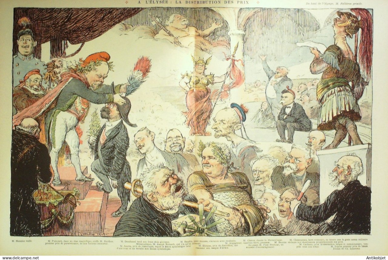 Reliure souple de 16 pages illustrées par de nombreux caricaturistes tels que Avelot Bac Balluriau Barcet Burret Capy Cappiello Carlegle Delannoy Delaw Faivre Florès Genty Gerbault Gottlob Guillaume Guydo Hemard Hermann Hérouard Huard Iribe Jeanniot Leandre Losques Markous Metivet Meunier Mirande Nob Ostoya Plumet Poulbot Prejelan Radiguet Roubille Sam Tiret Bugnet Villemot