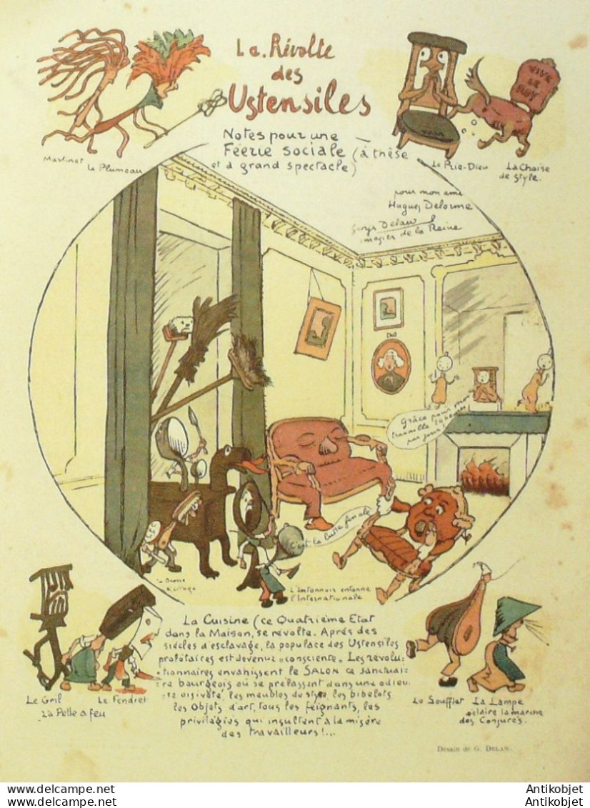 Reliure souple de 16 pages illustrées par de nombreux caricaturistes tels que Avelot Bac Balluriau Barcet Burret Capy Cappiello Carlegle Delannoy Delaw Faivre Florès Genty Gerbault Gottlob Guillaume Guydo Hemard Hermann Hérouard Huard Iribe Jeanniot Leandre Losques Markous Metivet Meunier Mirande Nob Ostoya Plumet Poulbot Prejelan Radiguet Roubille Sam Tiret Bugnet Villemot