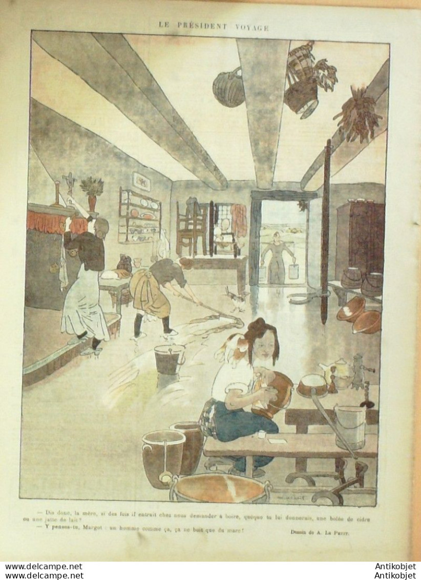 Reliure souple de 16 pages illustrées par de nombreux caricaturistes tels que Avelot Bac Balluriau Barcet Burret Capy Cappiello Carlegle Delannoy Delaw Faivre Florès Genty Gerbault Gottlob Guillaume Guydo Hemard Hermann Hérouard Huard Iribe Jeanniot Leandre Losques Markous Metivet Meunier Mirande Nob Ostoya Plumet Poulbot Prejelan Radiguet Roubille Sam Tiret Bugnet Villemot
