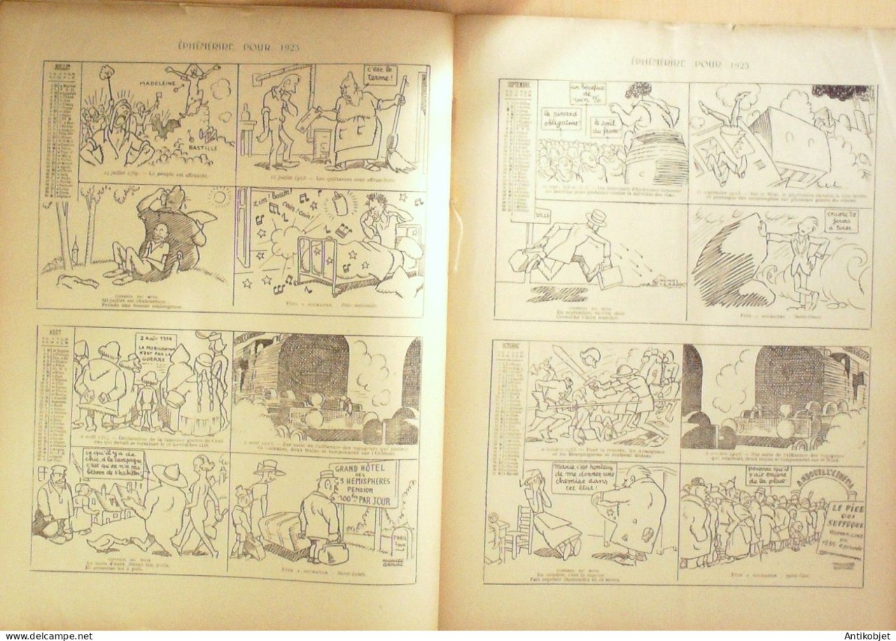 Reliure souple de 16 pages illustrées par de nombreux caricaturistes tels que Avelot Bac Balluriau Barcet Burret Capy Cappiello Carlegle Delannoy Delaw Faivre Florès Genty Gerbault Gottlob Guillaume Guydo Hemard Hermann Hérouard Huard Iribe Jeanniot Leandre Losques Markous Metivet Meunier Mirande Nob Ostoya Plumet Poulbot Prejelan Radiguet Roubille Sam Tiret Bugnet Villemot