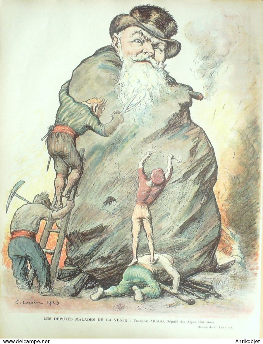 Reliure souple de 16 pages illustrées par de nombreux caricaturistes tels que Avelot Bac Balluriau Barcet Burret Capy Cappiello Carlegle Delannoy Delaw Faivre Florès Genty Gerbault Gottlob Guillaume Guydo Hemard Hermann Hérouard Huard Iribe Jeanniot Leandre Losques Markous Metivet Meunier Mirande Nob Ostoya Plumet Poulbot Prejelan Radiguet Roubille Sam Tiret Bugnet Villemot
