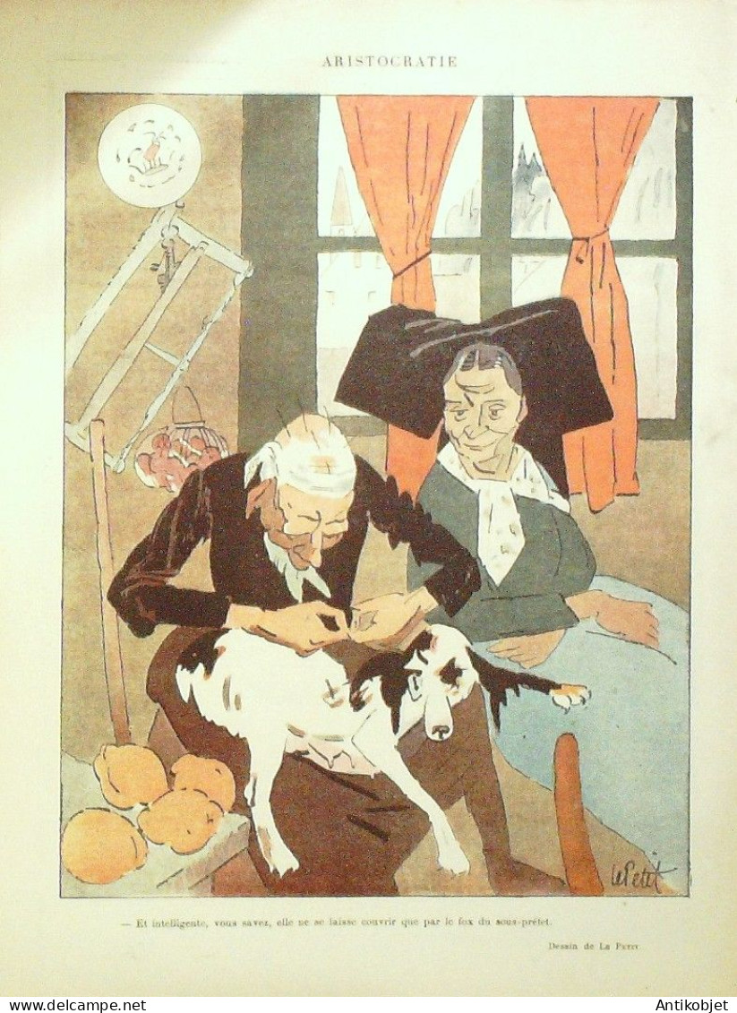 Reliure souple de 16 pages illustrées par de nombreux caricaturistes tels que Avelot Bac Balluriau Barcet Burret Capy Cappiello Carlegle Delannoy Delaw Faivre Florès Genty Gerbault Gottlob Guillaume Guydo Hemard Hermann Hérouard Huard Iribe Jeanniot Leandre Losques Markous Metivet Meunier Mirande Nob Ostoya Plumet Poulbot Prejelan Radiguet Roubille Sam Tiret Bugnet Villemot