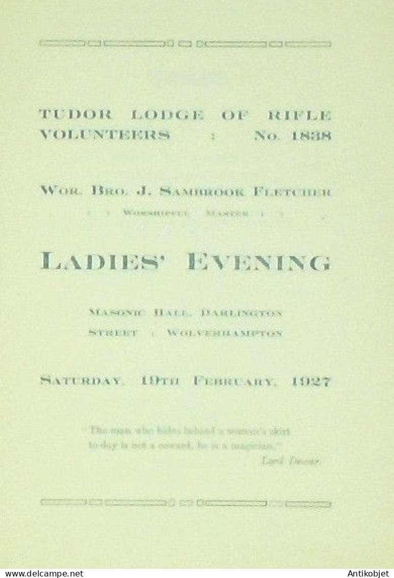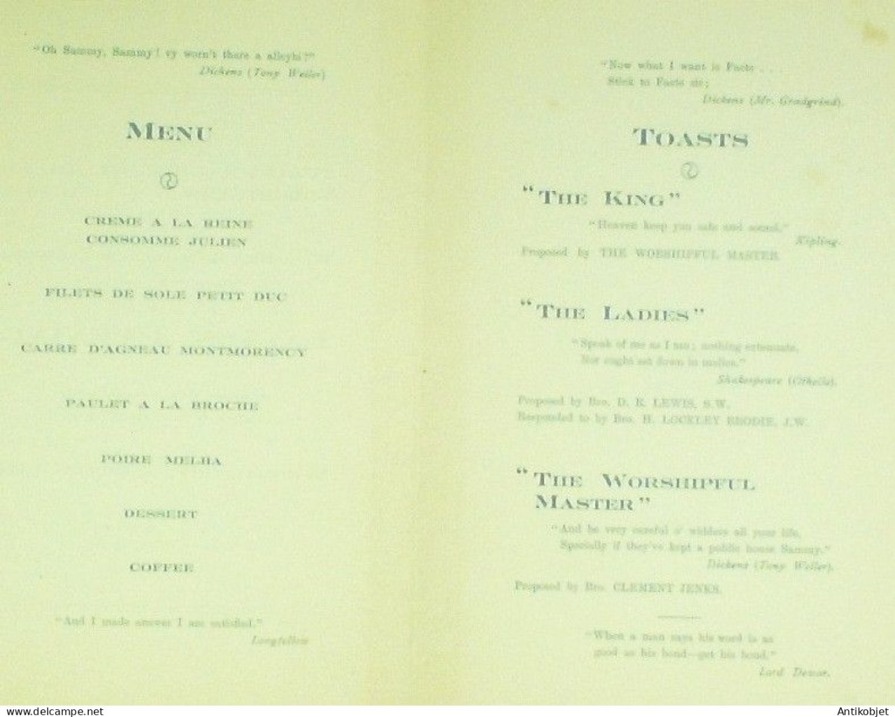 Menu banquet illustre Ladies Festival worlverhampton 1927