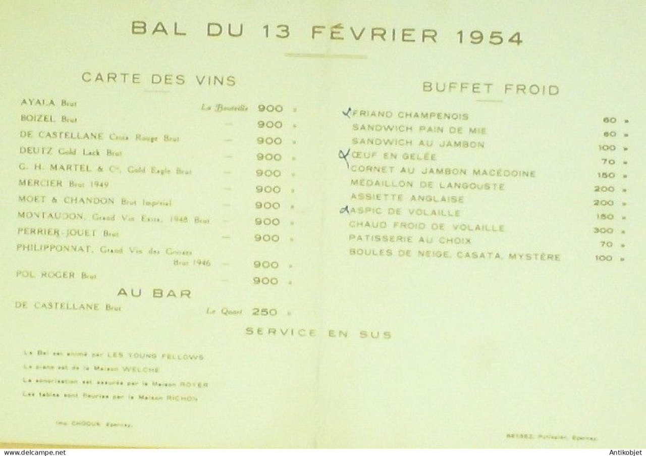 Menu banquet Officers de Reserve d'Epernay (51) 1954