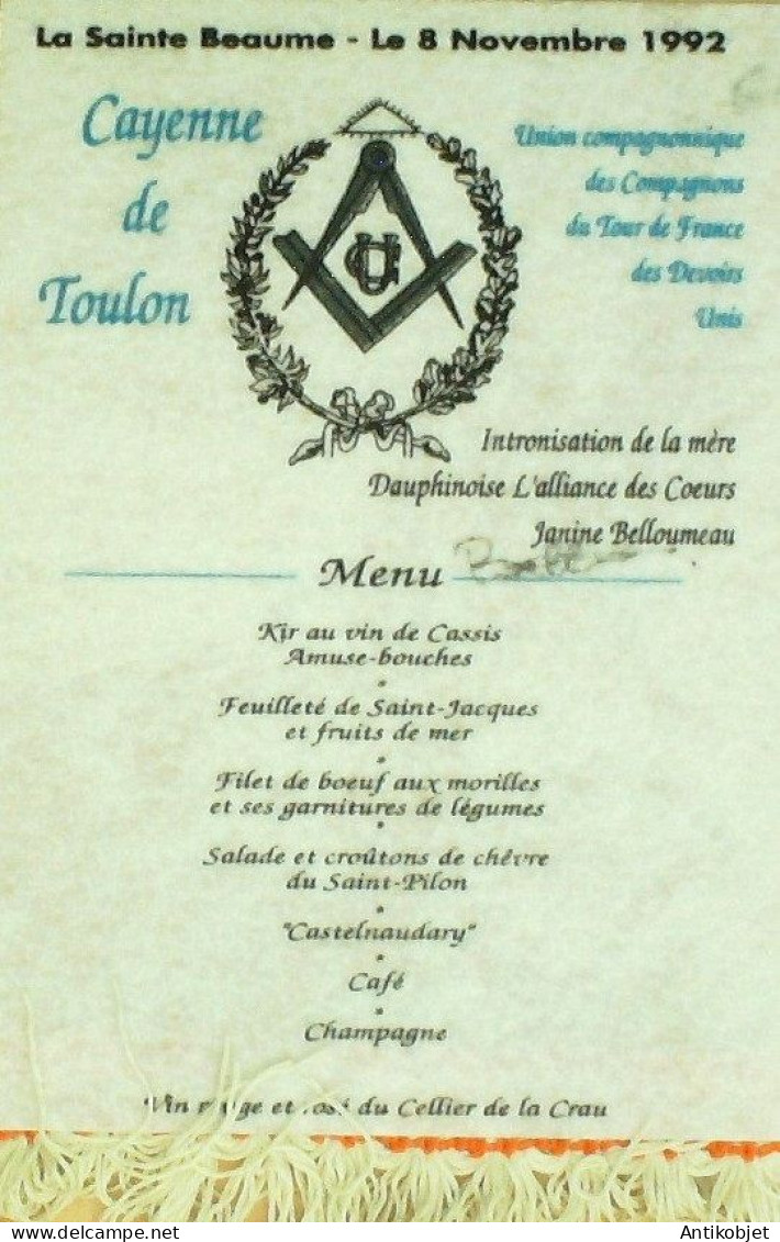 Menu fanion illustrant La Ste Beaume banquet Cayenne de Toulon 1992